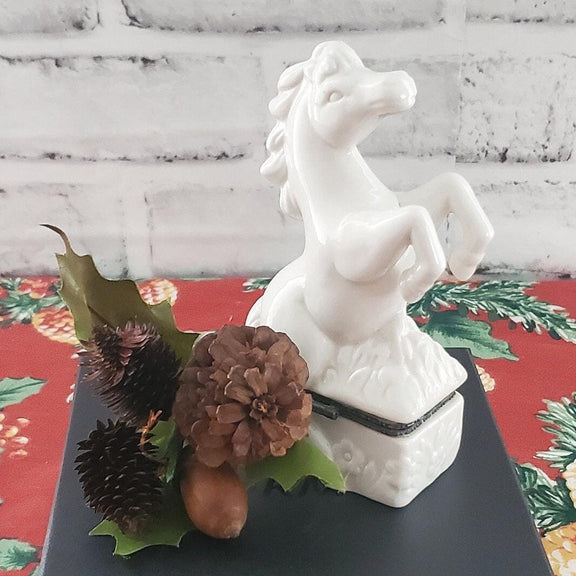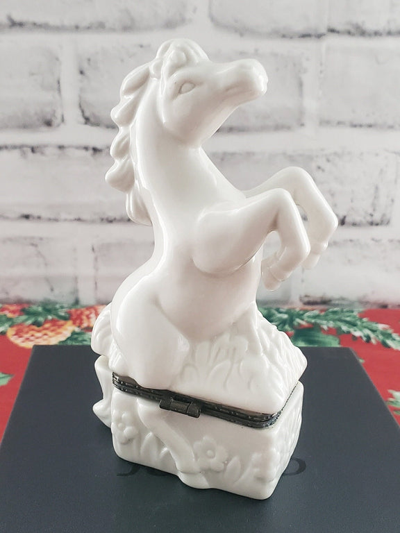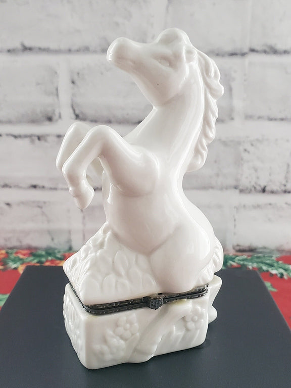 Ceramic Horse Trinket Box: White Glazed Jewelry Holder